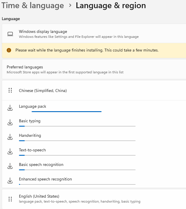 为了体验原生态,自然去下载“原版”英文版更为合适。一通下一步,Windows11,哦不,是Tiny11版Windows就安装好了。在设置中添加中文语言包。
