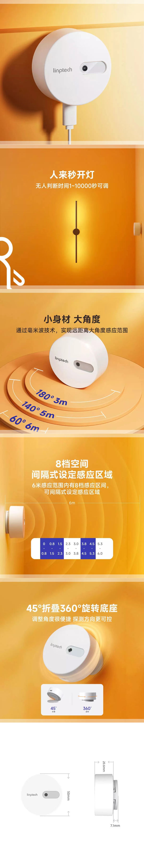 毫米波雷达传感器+光照传感器。在传感器插件设置中可设置“指示灯是否闪烁”、无人判断时间、接近远离边界,感应范围。